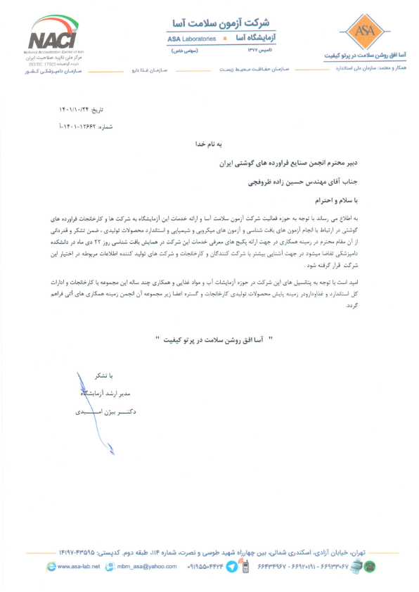 بیشتر بخوانید رونمایی از جدیدترین سینی پپرونی و سالامی توسط «Hormel Gatherings» 2 سال پیش تجهیز خطوط برش کالباس با فناوری روز شرکت «تریف» 3 هفته پیش اعلام آخرین قیمت گوشت گوسفند و گوساله 1 سال پیش ورود روزانه ۲۵۰ تا ۳۰۰ تن گوشت گرم به کشور/ آخرین قیمت انواع گوشت و دام زنده 1 سال پیش هجدهمین جشنواره تولید ملی – افتخار ملی 5 سال پیش مطالعه مطالب بیشتر