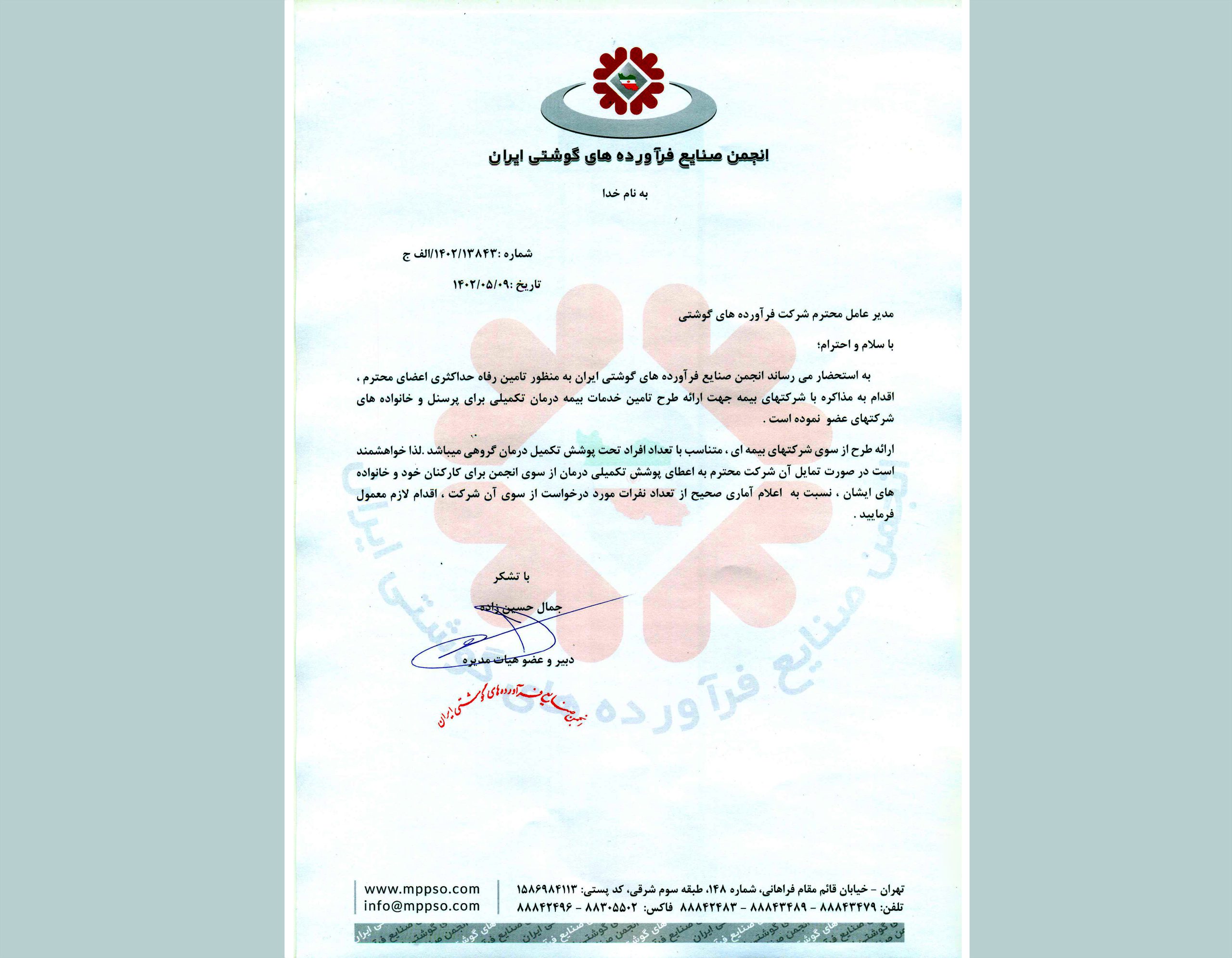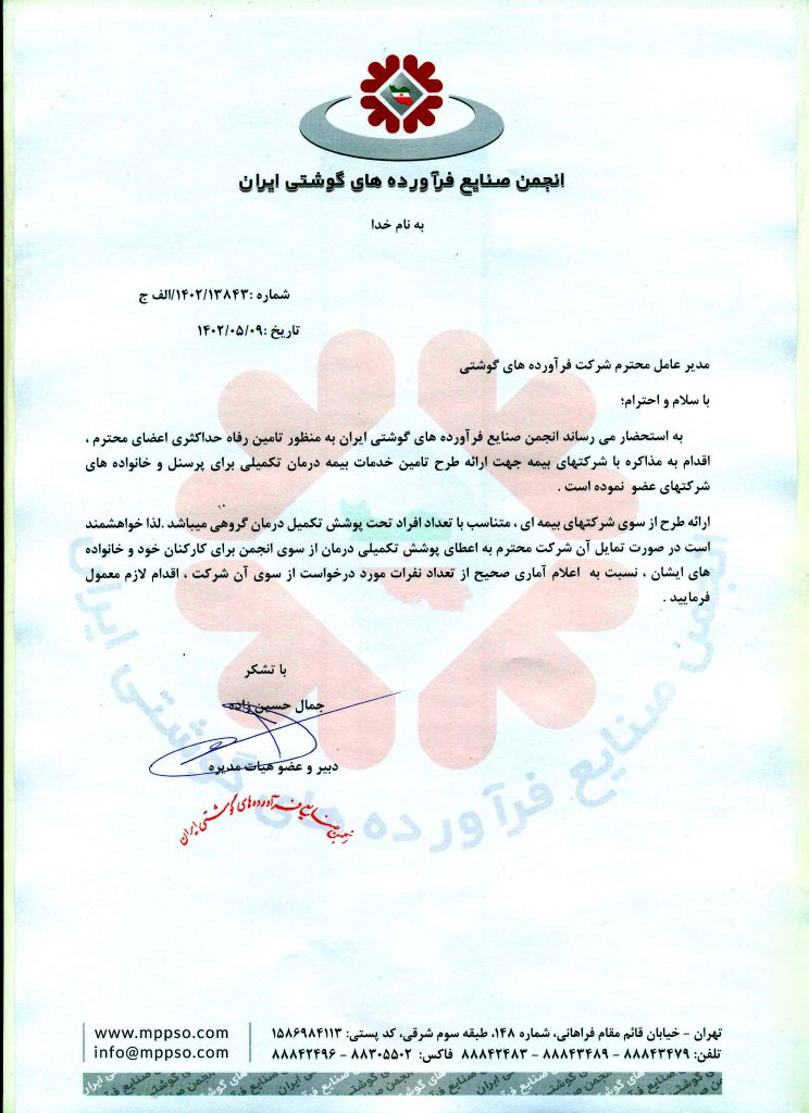ارائه خدمات بیمه تکمیلی به اعضای انجمن صنایع فرآوردههای گوشتی ایران
