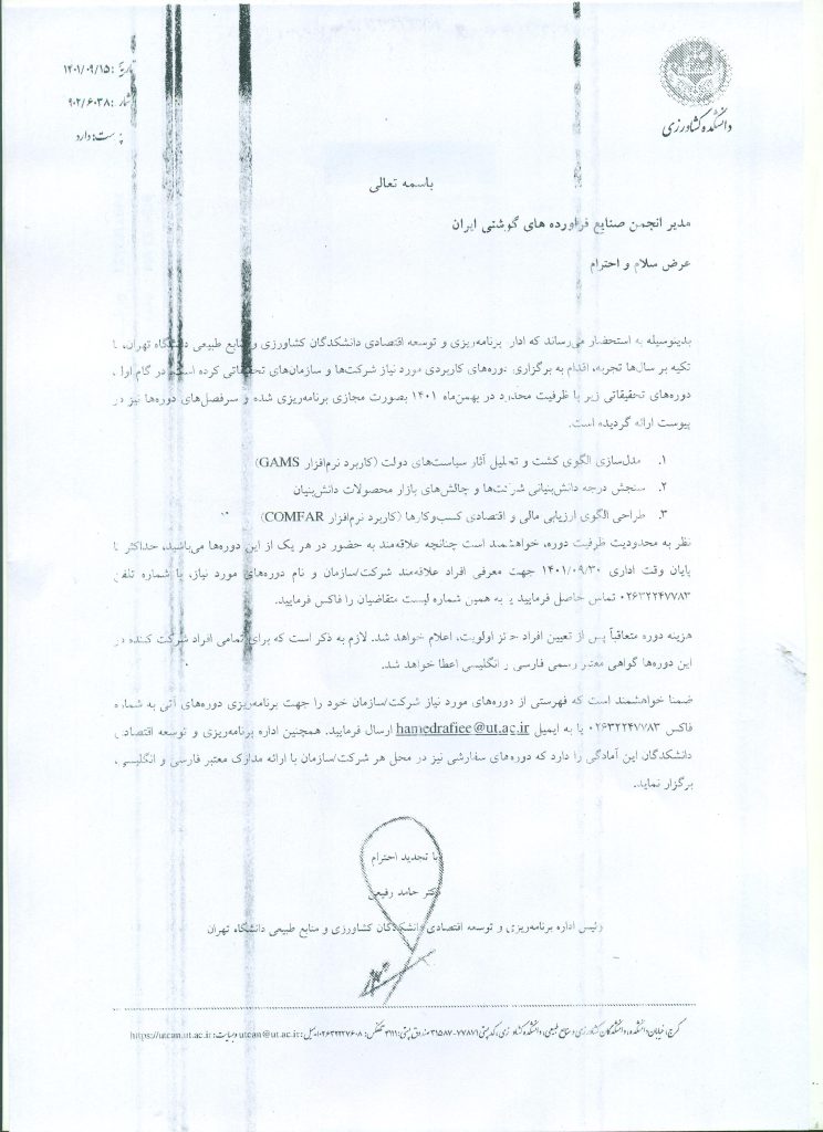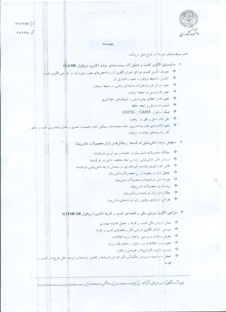 برگزاری دوره های آموزشی دانشکده کشاورزی دانشگاه تهران