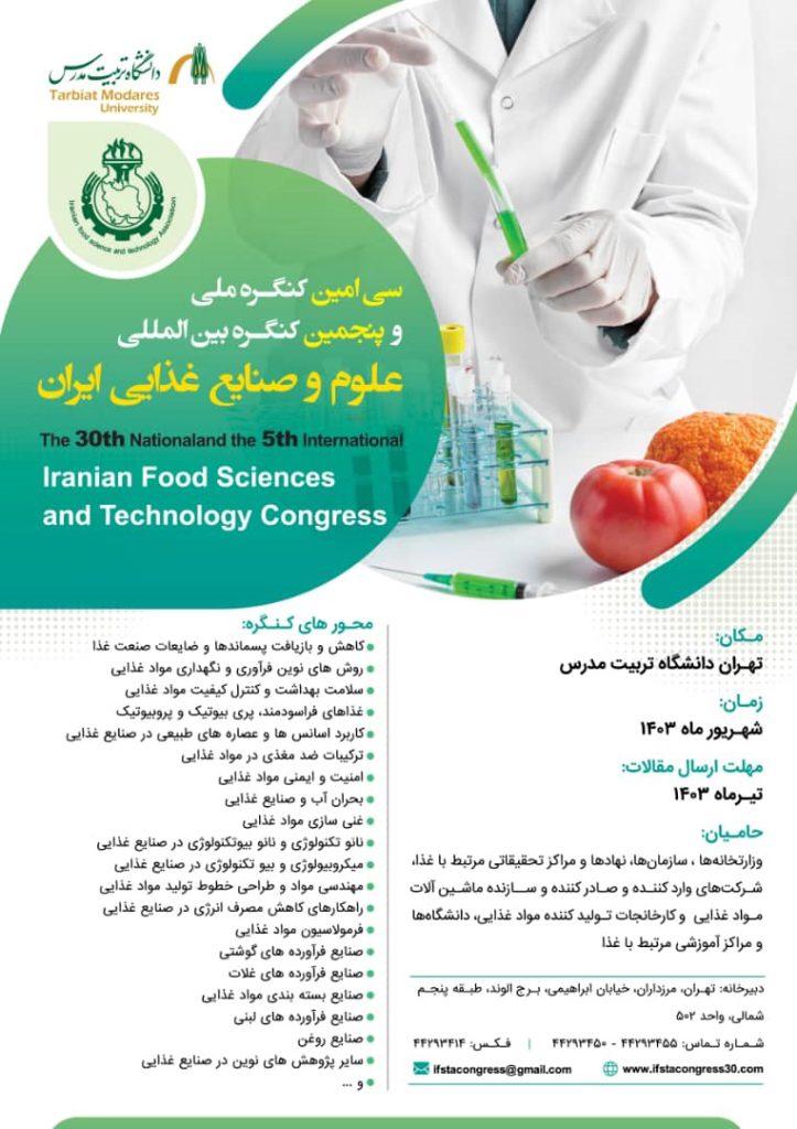 سیامین کنگره ملی و پنجمین کنگره بینالمللی علوم و صنایع غذایی ایران در شهریورماه ۱۴۰۳ توسط انجمن علوم و صنایع غذایی ایران برگزار خواهد شد.