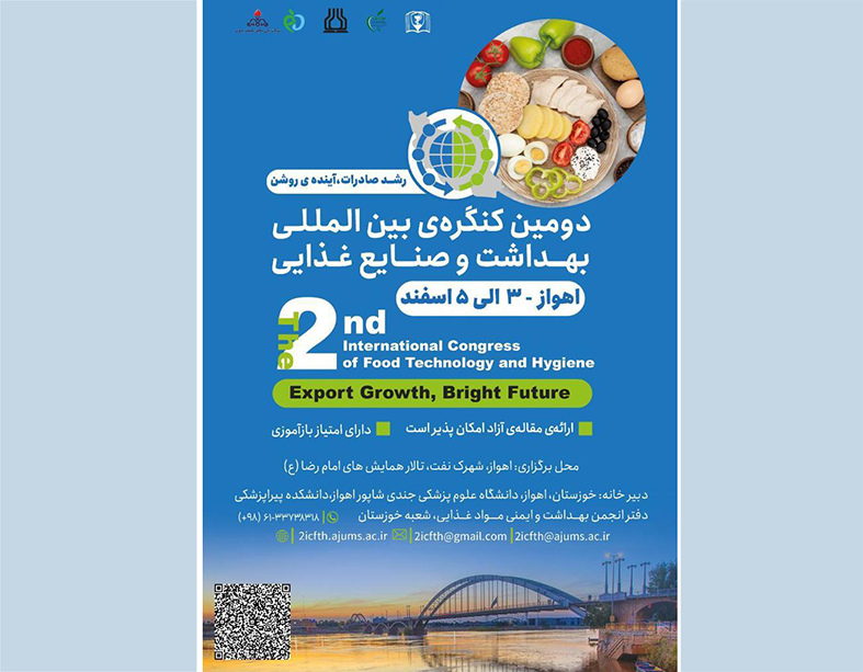 دومین کنگره بینالمللی بهداشت و صنایع غذایی از 3 تا 5 اسفندماه در اهواز برگزار میشود.