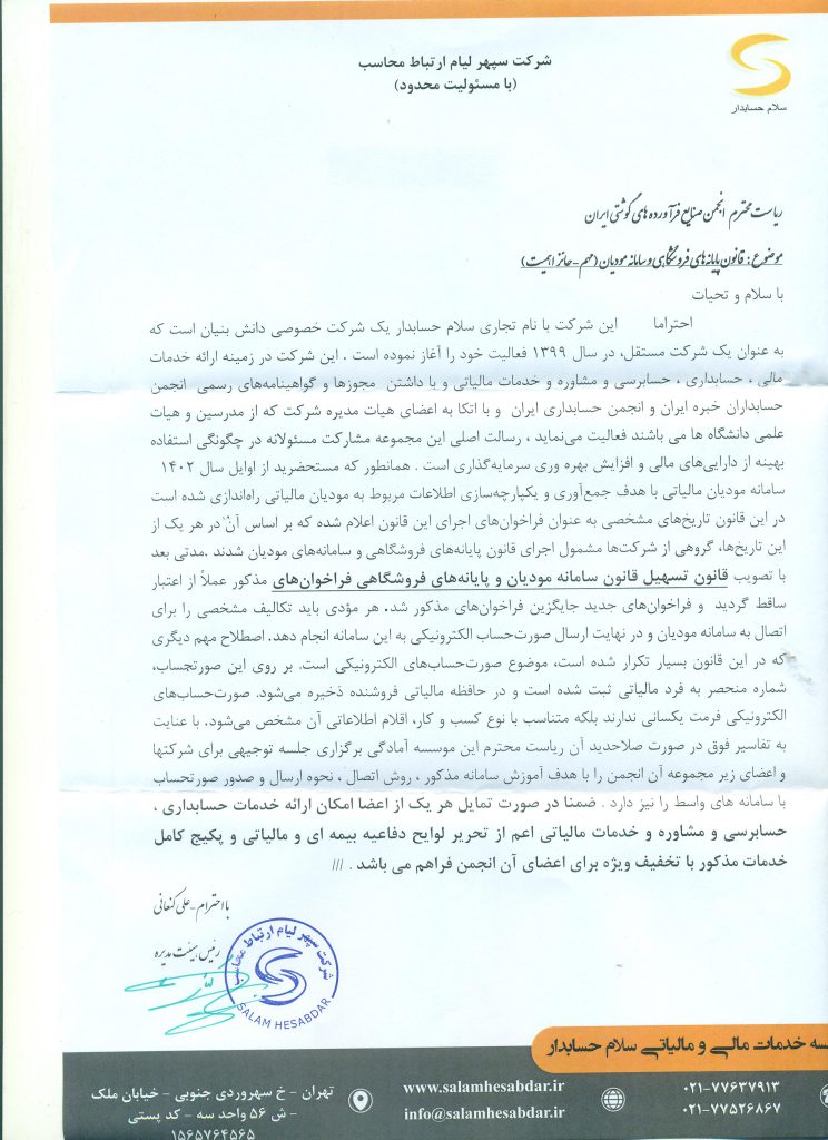 بیشتر بخوانید نشست تجاری سه جانبه بررسی همکاریهای مشترک تجاری ایران، امارات و عمان برگزار میشود 3 سال پیش خدمات مشاوره مؤسسه «سروش زرنگار» با شرایط ویژه برای اعضای انجمن صنایع فرآوردههای گوشتی ایران 1 سال پیش صنعت سوسیس در آستانه تحول 7 ماه پیش قرار گرفتن غیرمنصفانه سوسیس و کالباس در فهرست کالاهای آسیبرسان 3 سال پیش تأثیر واردات گوشت بر بازار چقدر است؟ / نحوه توزیع باید اصلاح شود 1 سال پیش مطالعه مطالب بیشتر