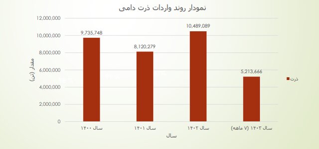 این آمارها نشان‌دهنده این است که در سال ۱۴۰۰ میزان واردات جو دامی بیش از سایر سال‌ها بوده و به مرور میزان این واردات روند کاهشی داشته است.
