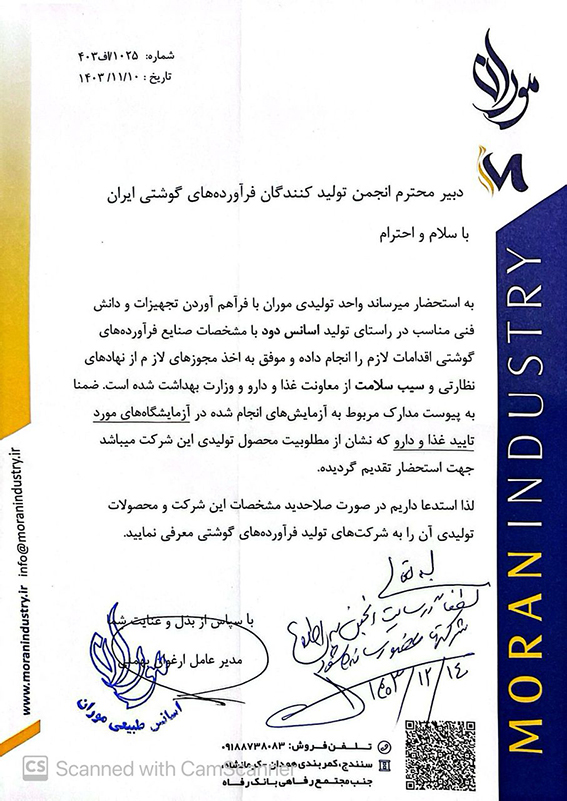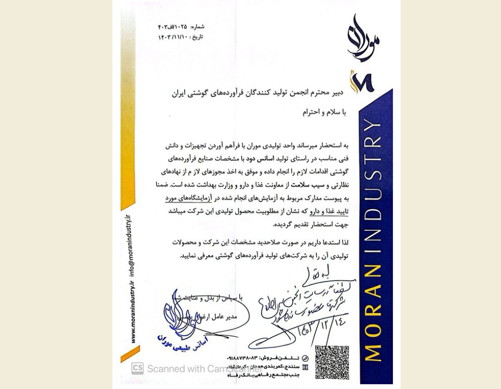 به گزارش روابط عمومی انجمن صنایع فرآورده های گوشتی ایران، واحد تولیدی «موران» با فراهم آوردن تجهیزات و دانش فنی مناسب در راستای تولید اسانس دود، با مشخصات صنایع فرآورده های گوشتی اقدامات لازم را انجام داده و موفق به اخذ مجوزهای لازم از نهادهای نظارتی و سیب سلامت از معاونت غذا و دارو و وزارت بهداشت شده است.
