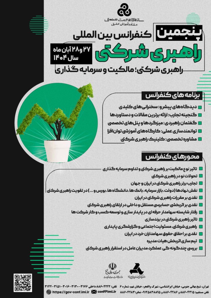 پنجمین کنفرانس بینالمللی راهبری شرکتی 27 و 28 آبانماه توسط سازمان مدیریت صنعتی برگزار میشود.